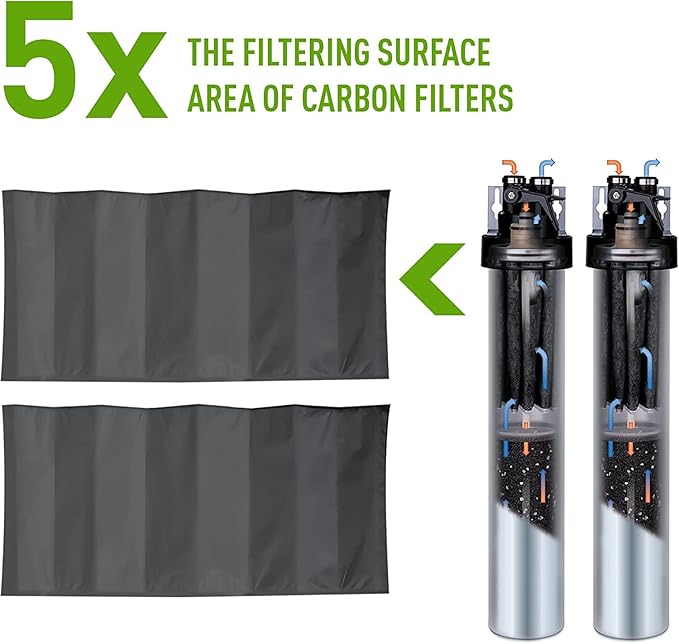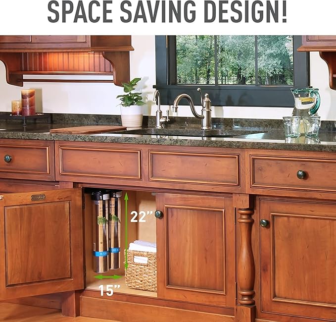 - FILTERS 1,000 GALLONS equivalent to 7,000 bottles of water (0.5 gpm flow rate). Exclusive Micro-Pure filtration technology protects the pleated surface inside the cartridge with dual-stage filtration to ensure maximum reduction of substances (Installation space required: 15W x 22H x 5D inch; Separate faucet required).