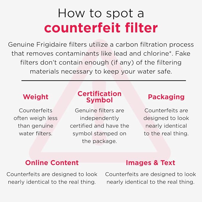 - Frigidaire Genuine Filters are certified by the Water Quality Association to WQA/ASPE/ANSI S 803 for sustainability