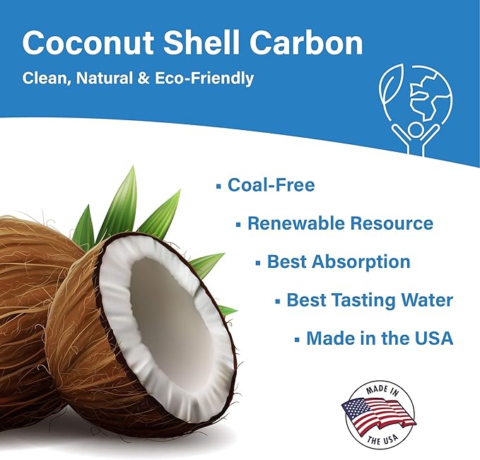 - COAL-FREE, PLANET-FRIENDLY CARBON: Our filters are made from coconut shell, a sustainable, renewable resource that actually works better than coal at removing bad odors and chemicals from your water.