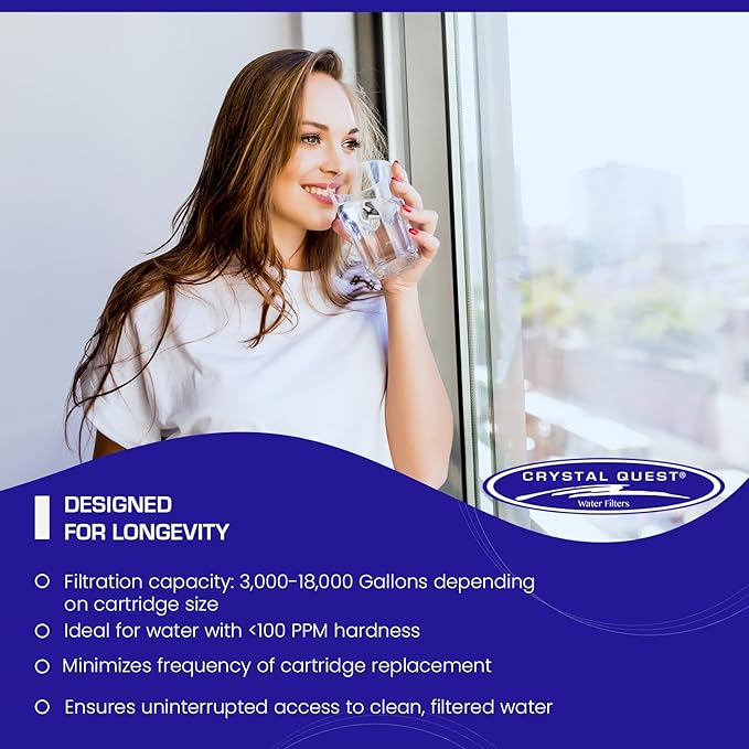 - 𝐋𝐨𝐧𝐠-𝐋𝐚𝐬𝐭𝐢𝐧𝐠 𝐅𝐢𝐥𝐭𝐫𝐚𝐭𝐢𝐨𝐧: This activated carbon filter is designed for durability, having a capacity of up to 3,000 gallons when used with water containing less than 100 PPM hardness. It delivers extended performance, reducing the need for frequent replacements while maintaining effective filtration.