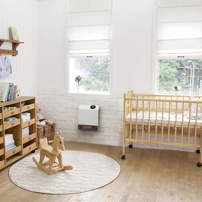 - COMPACT - Uses less than 2 square feet of wall space and plugs into a normal 110v outlet. When installed over the outlet, you can hide the cord behind the heater.