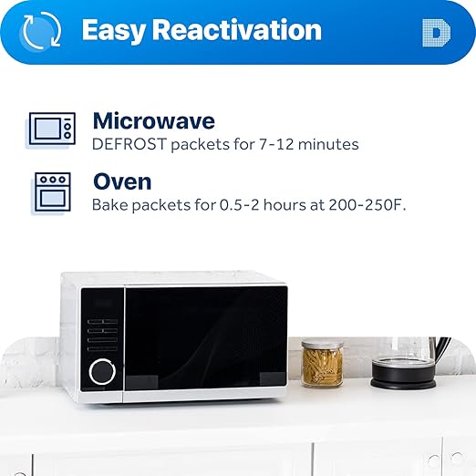 - [Ultimate Moisture Absorption and Reactivation] Packet material is high quality coated paper for Ultimate Moisture Absorption and Heat Resistance for Reuse; (Place in the Oven for 0.5 to 2 hours at 200 to 250F or Microwave for About 7 to 12 Minutes at Defrost Mode)