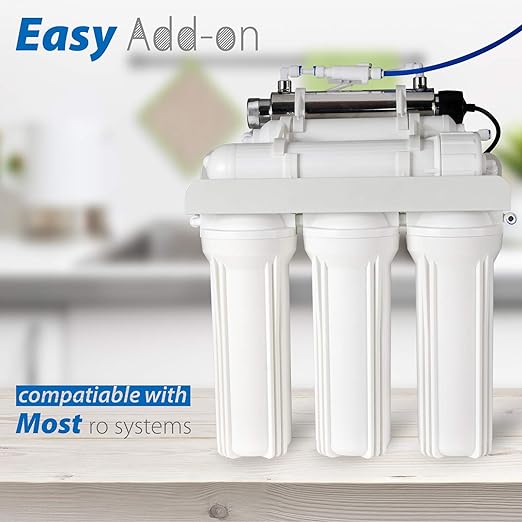 - COMPATIBLE & EASY INSTALLATION - Complete add-on Kit, this ultraviolet light is compatible with most reverse osmosis (RO) water filtration systems as a final stage of protection. If having a tank, install this UV filtration system after the storage tank where water flow is high enough.