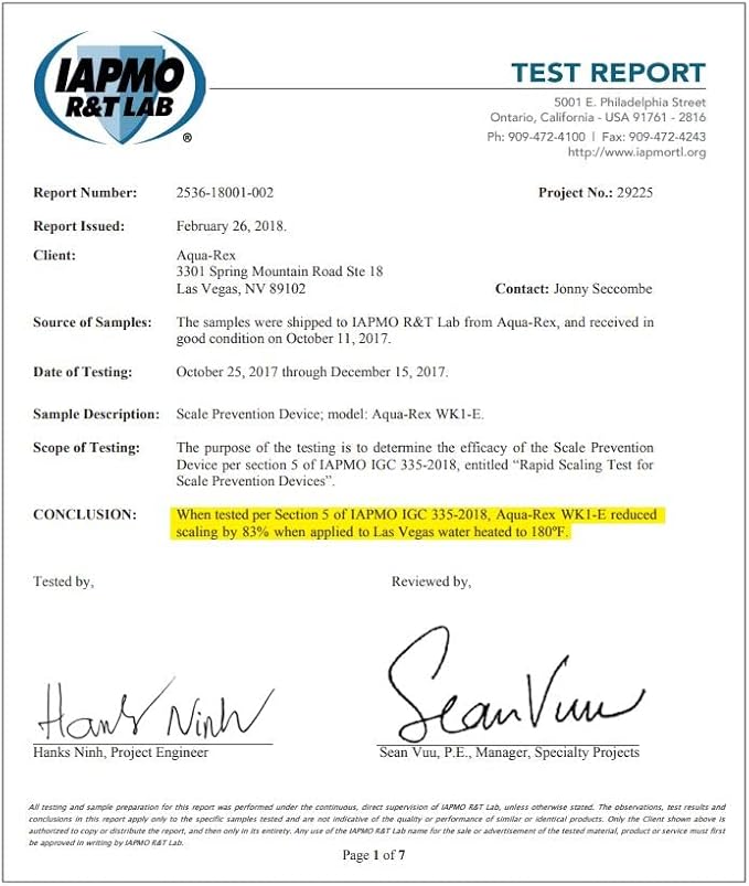 - PERFORMANCE VERIFICATION: Aqua-Rex is the only device of its kind that has performance verification from an independent third party. IAPMO R&T Labs has proven that Aqua-Rex softens water.