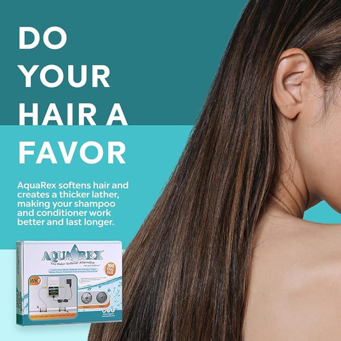 - SOFT ON HAIR AND SKIN: Aqua-Rex will make your hair and skin softer, without the slippery feel caused by sodium in traditional softeners. Your soaps and detergents will lather better with less being consumed.