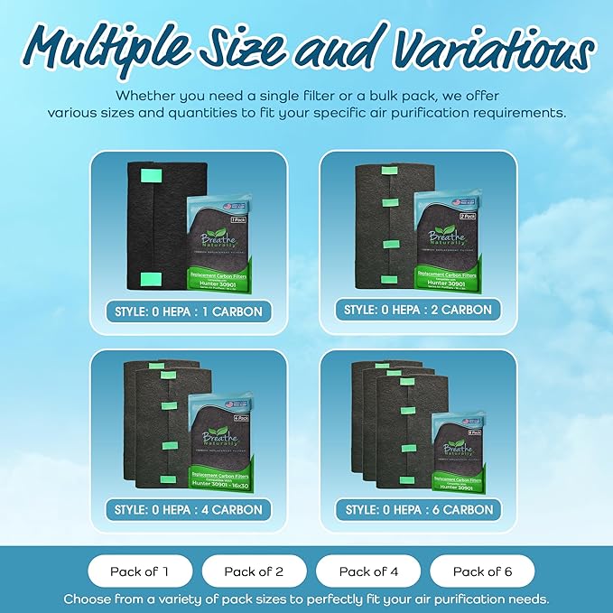 - MULTIPLE PACK OPTIONS: Available in various pack sizes, including 1, 2, 4, and 6 packs, our replacement filters offer flexible purchasing options to suit your needs. Whether you require a single filter for immediate replacement or several filters for long-term use, these multiple pack options ensure you are always prepared to maintain optimal air quality.