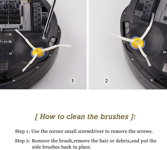 - How to clean the roomba brush : Step 1: Use the corner small screwdriver to remove the screws. Step 2: Remove the brush,remove the hair or debris,and put the side brushes back in place