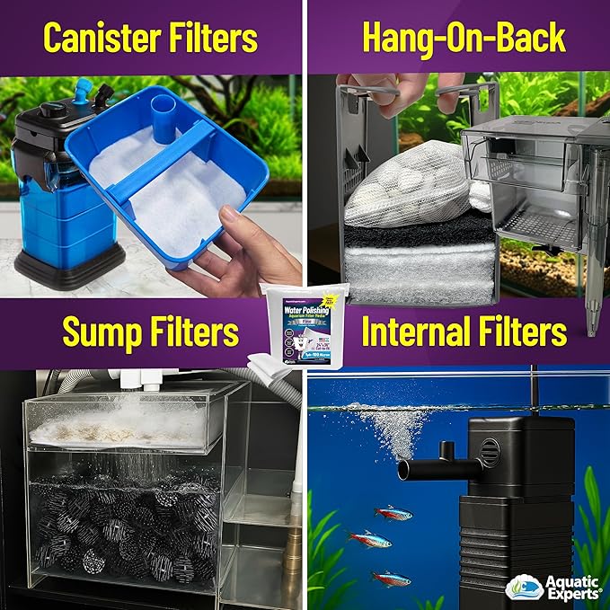 - SPARKLING CLEAR WATER: Our 100 micron filter pad has a dense fiber network to effectively trap fine to extra fine particles floating in your aquarium water to produce sparkling clear water.