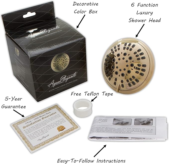 - π¦ UNLIKE OTHER SHOWER HEADS THAT are made from cheap, thin plastic that leaks after a few showers, the Aqua Elegante Shower Head has a THICK LAYER of ROBUST ABS THERMOPLASTIC RESIN that is BPA FREE. The high pressure showerhead RESISTS CORROSION, WITHSTANDS PHYSICAL IMPACT, and DOESN'T RUST - while still being LIGHTWEIGHT and EASY-TO-HANDLE. What this means to you is a LONG LASTING shower head without having to deal with internal leaks.