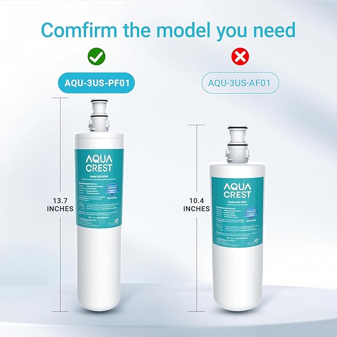 - 【New upgrade & Long-lasting Service Life】After advanced upgrade, the model number is changed from AQU-3US-PF01 into AQU-WF00. Enjoy fresh water by replacing your filter every 6 months or 15,000 gallons. Whichever comes first will vary based on water quality.