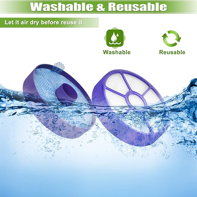 - WASHBLE AND REUSABLE: The filters for Dyson DC33 vacuum are washable and reusable, clean by hand washing in water and let it completely air dry before reusing them. Replacing filters regularly helps improve the suction power of your vacuum and make your home more Healthy and Cleaner! It is better to replace new one every 3 to 6 months