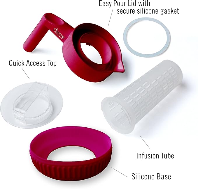 Glass Water Infusion Pitcher | BPA Free Fruit Infuser | Premium Borosilcate Glass for Hot and Cold Liquids | Infuse Iced Tea, Coffee, Water, Juice, Vodka, Tequila - Cestari Infuser, Red 44 ounces