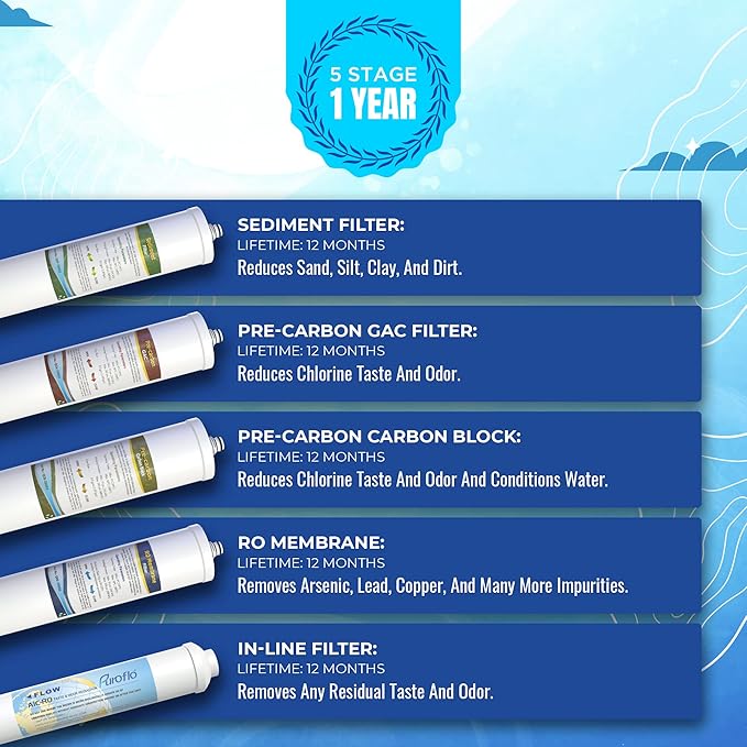 - Tasty Drinking Water- Multi-stage carbon block absorbs chlorine byproducts, and Inline-carbon refreshes tastes. Puroflo reverse osmosis water filter provides you better tasting water.