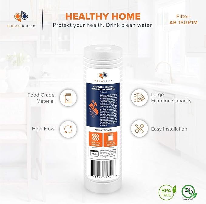 - Versatile Compatibility for Any Setup: Aquadboon’s 1 micron water filter 10x2.5 cartridge is compatible with standard 10-inch water filter housing, making it an ideal choice for whole house water filter system, reverse osmosis systems, and more.