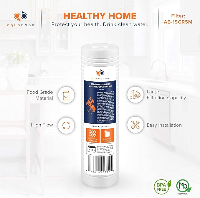 - Effortless Installation and Universal Fit: Enjoy easy, tool-free installation with Aquaboon’s 10 inch water filter cartridge. Compatible with 10x2.5 filter housings, sediment filters fit seamlessly into whole home water filtration systems and RO systems.
