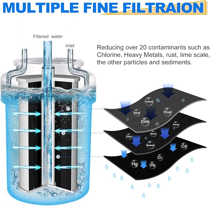 - 💦𝐏𝐞𝐫𝐟𝐨𝐫𝐦𝐚𝐧𝐜𝐞 - Using multi-stage filtration technology that would helps to remove Chlorine, THM, VOCs, cadmium, chromium, copper, and other suspended particles from water.