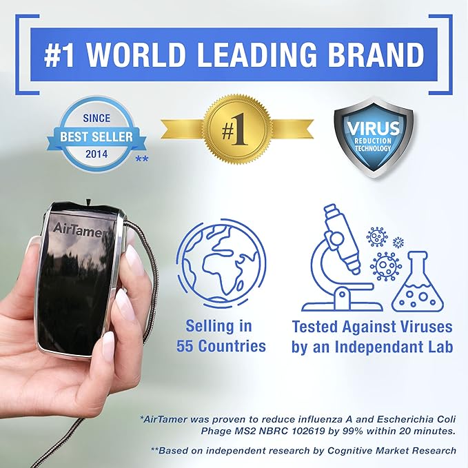 - Certified Performance You Can Trust β Trusted in 55 countries around the world, AirTamer has been independently tested by Kitasato Research Center for Environmental Science. In these tests, AirTamer was proven to reduce Influenza A and Escherichia Coli Phage MS2 NBRC 102619 viruses by 99% within 20 minutes. AirTamer is also CARB approved with a zero ozone emission rating making it a premium, safe, and responsible personal purifier you can trust for every day use. EPA Est. No:100600- CHN-1.