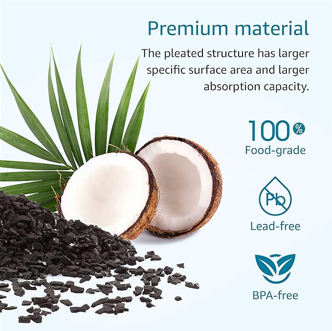- Efficient filtration: whole house water filter adopts food-grade polypropylene to reduce large particles and sediments larger than 5 microns in diameter effectively, and the 1-micron rating to reduce contaminants like chlorine, taste and odor. The granular activated carbon is made from natural coconut shells.