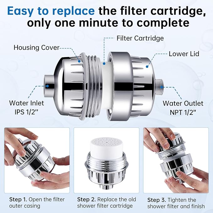 - ►AN EFFECTIVE FILTER GUARANTEES REFRESHING YOUR LIFE: This filter can reduce heavy metals, chlorine, heavy metals and other harmful impurities. Take better care of your skin and hair health. A healthy shower for you and your family.