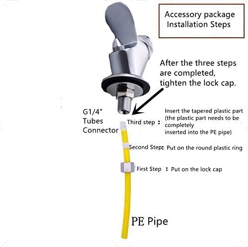 - 4.Installation: Two installation methods of bubbler water fountain faucet for you to choose , We are equipped with G1/2" adapter thread, So Fits 1/2" or 1/4" Tubes Connector(Out screw). (Note:Package not include PE Pipe). The Drinking Fountain Faucet can be used for Outdoor , direct drinking water purifier drinking station, school, park, Kitchen Sink and so on.