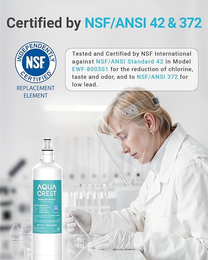 - After advanced upgrade, the model number is changed from AQU-F-1000 into AQU-WF03-F1. Our premium coconut carbon block filter is tested by independent laboratory against NSF/ANSI standard, which can effectively reduce chlorine, taste and odor.
