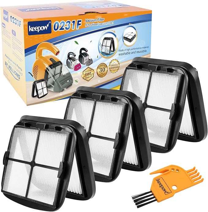 KEEPOW Pet Hair Eraser Filter Replacement 97D5 3 Pack, Compatible with Bissell Pet Hair Eraser Corded Handheld Vacuum 33A1 Series, 35V4 Series, 47R5 Series, Part# 2037416, 2031432