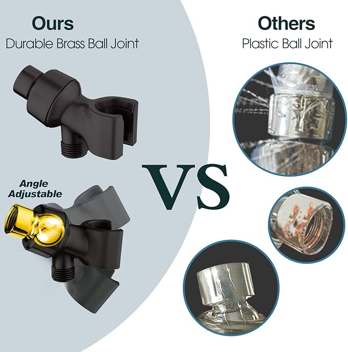- Angle-adjustable Overhead Bracket - Durable solid brass swivel ball joint that wonβt crack or leak for longevity. Easily adjust the shower head angle to your preference. Tool-free installation on a standard shower arm