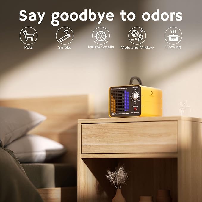 Airthereal MA10K-PRO Ozone Generator - High Capacity O3 Machine for Areas of 3500+ Square Feet, Home Ionizer Odor Remover, Yellow