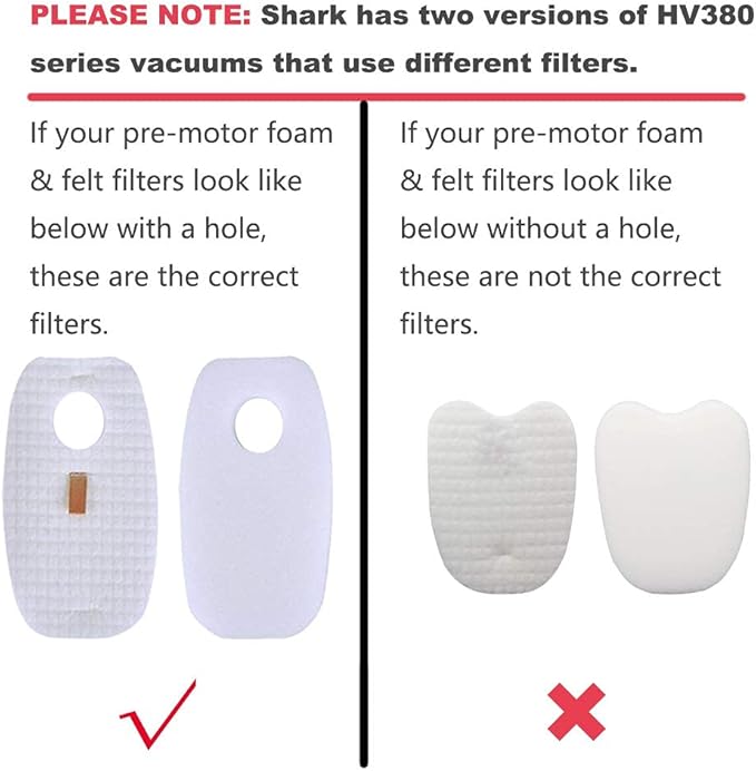 - PLEASE NOTE: Please confirm your vacuum filter matches the image of this item before ordering. Shark has two versions of the vacuums that use different filters. If your pre-motor foam & felt filters with a hole, this item is the correct filter