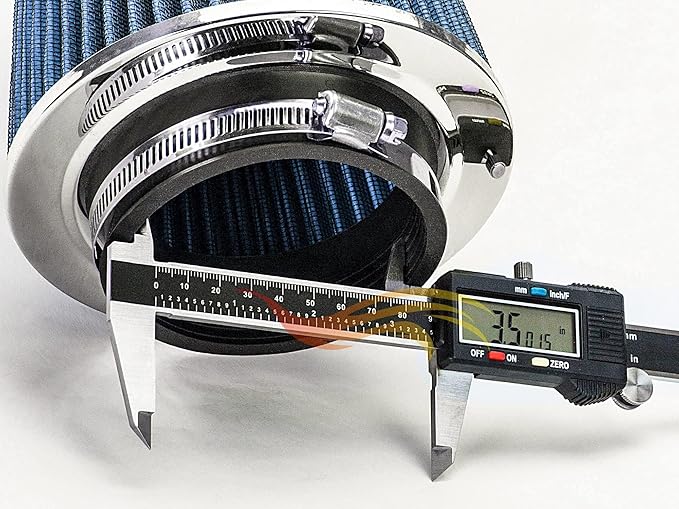 BLUE 3.5" 89 mm Inlet Truck Cold Air Cone Replacement Performance Washable Clamp-On Dry Air Filter (8" Tall)