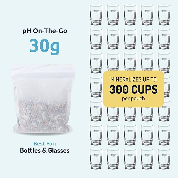 - PORTABLE ALKALINE WATER FILTRATION SYSTEM - Our ph On-The-Go Water Filter Pouch is re-seable, lightweight, and portable for multiple uses. Its filter beads can easily filter out harmful materials in the water, such as lead, while allowing minerals like calcium and magnesium through. Our proprietary blend utilizes 10+ kinds of materials to increase alkalinity up to pH 9. This softens the water, making it easily absorbable, while also adding trace elements and minerals.