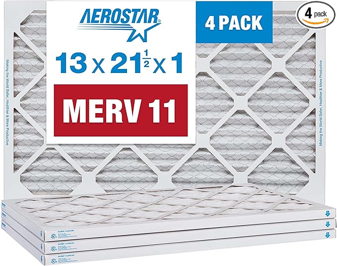 Aerostar 13x21 1/2x1 MERV 11, Pleated Air Filter, 13 x 21 1/2 x 1, Box of 4, Made in The USA