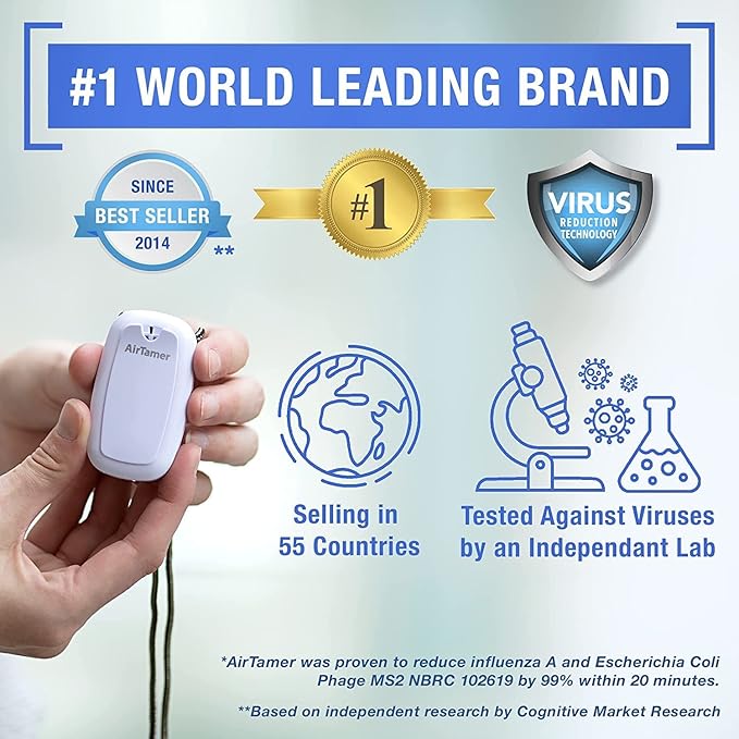 - GREAT FOR TRAVEL: The AirTamer A315W is the perfect travel accessory for those who love to explore without exposure to unsanitary air; The A315W's SMALL POWERFUL design includes a built-in pocket clip and patented conductive REPLACEABLE lanyard which is adjustable and features a break-away connector for extra safety; Wear it around your neck or clip it on your jacket and have a sphere of breathable clean air anywhere you go