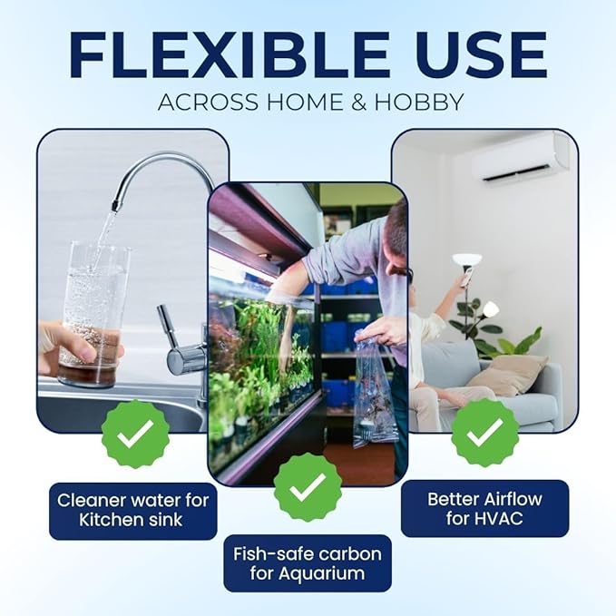 - π§ VERSATILE LIQUID PHASE APPLICATIONS: Tailored for diverse liquid phase applications, this granular activated carbon excels in removing organics from water streams. Its acid-washed composition makes it particularly effective for water filtration systems, including aquariums, fish ponds, and potable water setups.