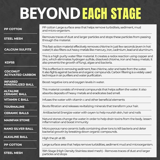 Bath Beyond Shower Filter Vitamin C 15 Stage High Output Water Filter With cartridge for Hard Water - Shower Head Filter Removes Chlorine Fluoride and Improves The Condition of Your Skin, Hair