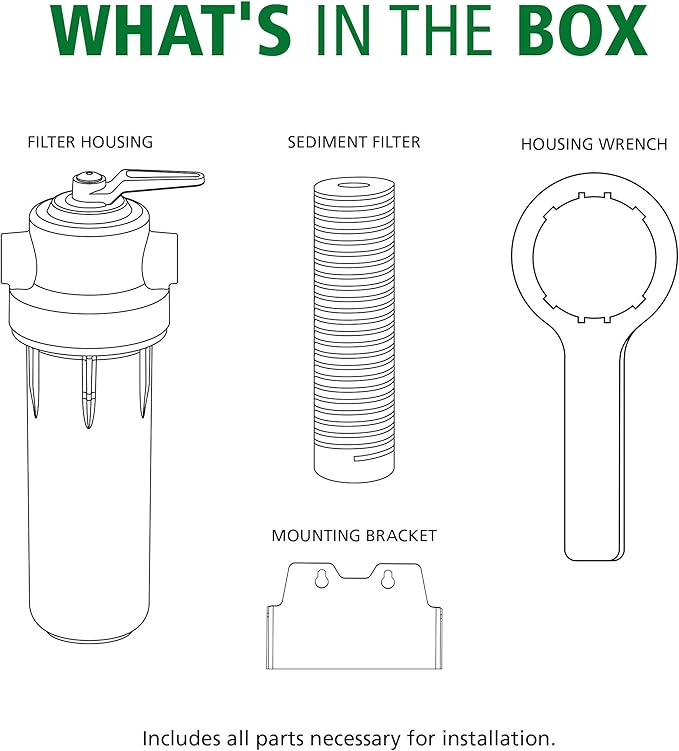 - Simple DIY Installation - Package includes filter housing, first sediment filter, and housing wrench. No plumber needed.