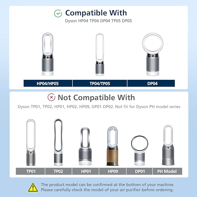 - 【NOTICE】⚠Please notice that this filter DOES NOT compatible with Dyson TP01, TP02, TP07, HP07, HP01, HP02, HP09, DP01 DP02, TP10, HP10. DOES NOT Comaptible with PH model series (not for PH04, PH03, PH3A, PH02, PH01), Please Check carefully your model number before order!
