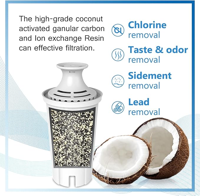 Hiwater Replacement for Brita Filters, Pitchers, Dispensers, NSF 42 Certified Pitcher Water Filter, Compatiable with Brita Classic OB03, Mavea 107007, 35557, and More (Pack of 4)