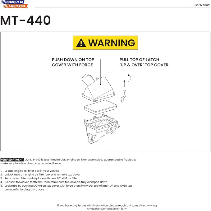 Spearhead MPG Defense Max Thrust Engine Air Filter For All Mileage Vehicles, Fits Like OEM, Restores MPG & Acceleration (MT-440)