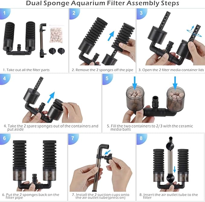 - Easy to use: Use a 4mm air hose to connect the end to the air pump and the other end to this tank filter. The outlet pipe in the sponge filter can be adjusted so that you can change the direction and height of the water flow (not including the pump and air hose, please choose a powerful pump for this filter according to your tank size)