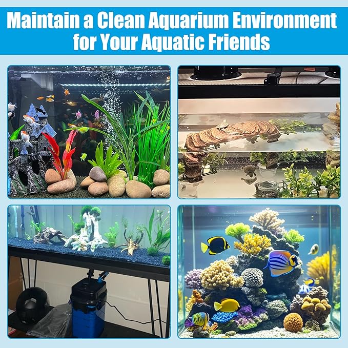 - 4 pcs of sponge bio filter pads (1xCoarse, 2xMedium, 1xFine): trap most visible debris particles without restricting water flow (Reusable after rinsed)