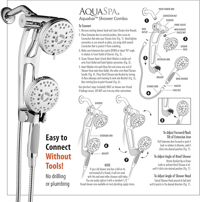 - EASY TOOL-FREE CONNECTION takes few minutes with just four hand-tighten connections - no need to call a plumber | Fits any standard shower arm | BEST LIFETIME WARRANTY and Hassle-Free U.S. Customer Care Support with LIVE American customer service representatives to help you immediately on the phone or by email