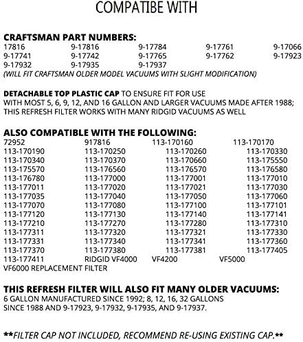 - ❤ VF4000 filter fits for Ridgid 5-20 gallon vacuums, for Husky 6-9 gallon vacs and for CRAFTSMAN vacuums made after 1988(Part #17816 #9-17816)