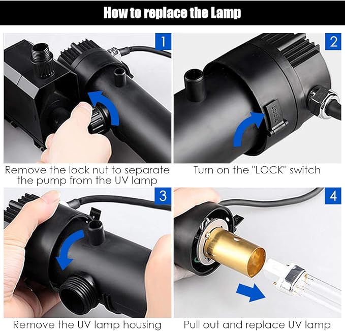 - 【Convenient & Safe Using】There are some unique designs for better and safer use. It equipped with a viewing port, which is designed to see if the lamp is working properly. Additionally, the water pump is made of high-quality material with IPX8 water-proof level that runs submerged well. Even better, 33 ft power cord with UL certification is safe to use.