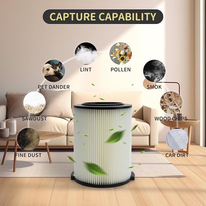 - 【Features】Single One layer pleated paper filter construction, Washable and reusable.Captures sawdust, fine dust, pet dander, lint, pollen, smok, wood chips and car dirt without clogging. The filter media is rated 99.97% efficient for fine particles such as allergens and pollens down to as small as 0.3 microns.