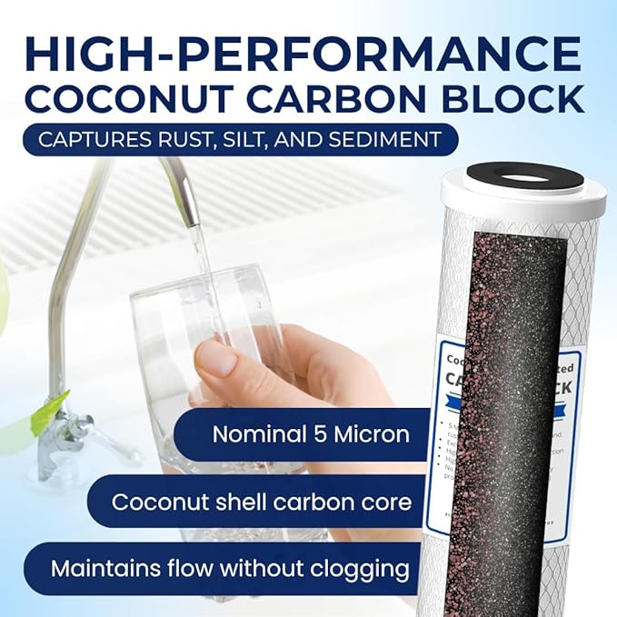 - π§ HIGH-QUALITY CARBON BLOCK: Crafted from premium coconut shell carbon, our water filters not only enhance taste and remove impurities but also improve overall water quality. Enjoy peace of mind knowing your water is filtered through high-quality materials designed for optimal performance and durability.