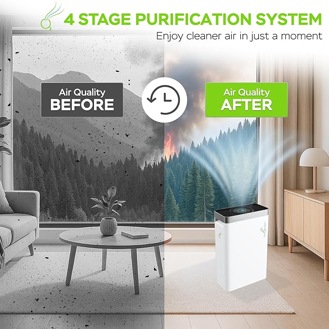 - Smart WiFi Control & App: Manage your air purifier from anywhere via the app; Set timers, adjust fan speeds, and monitor real-time air quality for ultimate convenience.