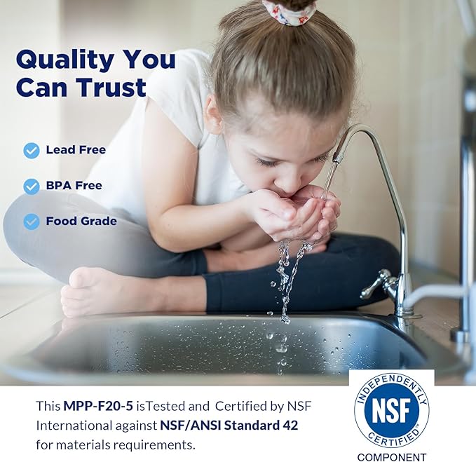 - NSF CERTIFICATION - Compare to string wound filter, this filter using unique hot melt technology, no fibers falling, avoid second pollution to liquid
