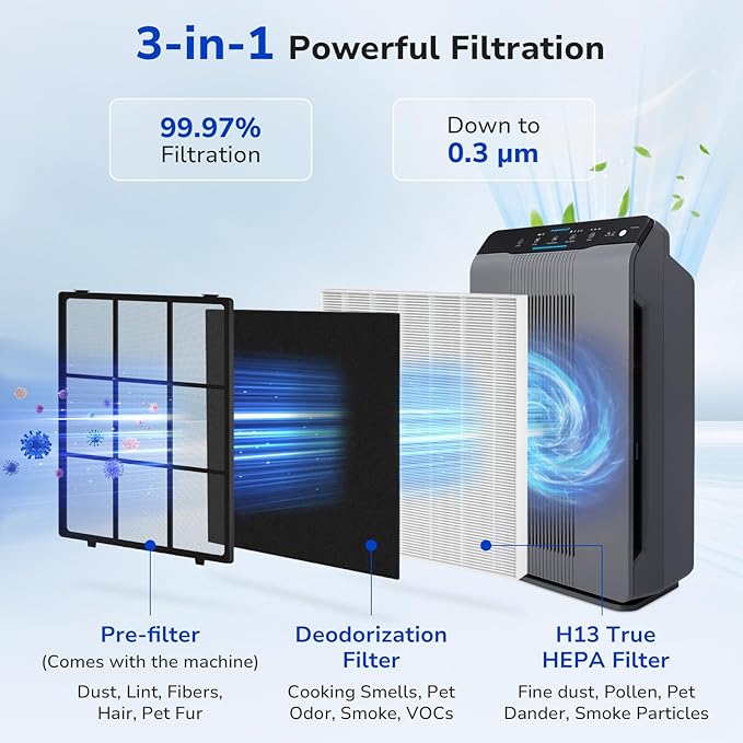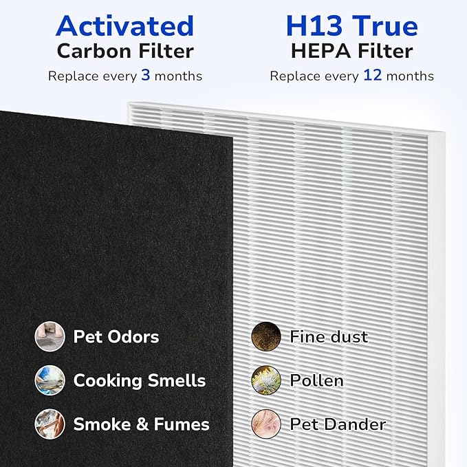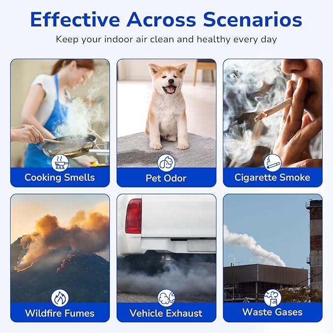 - 【Fresh Air】Helps people sensitive to the air for easier breathing.Our filters can effectively filter the smoke generated by wildfires, making the indoor air fresh and pleasant.