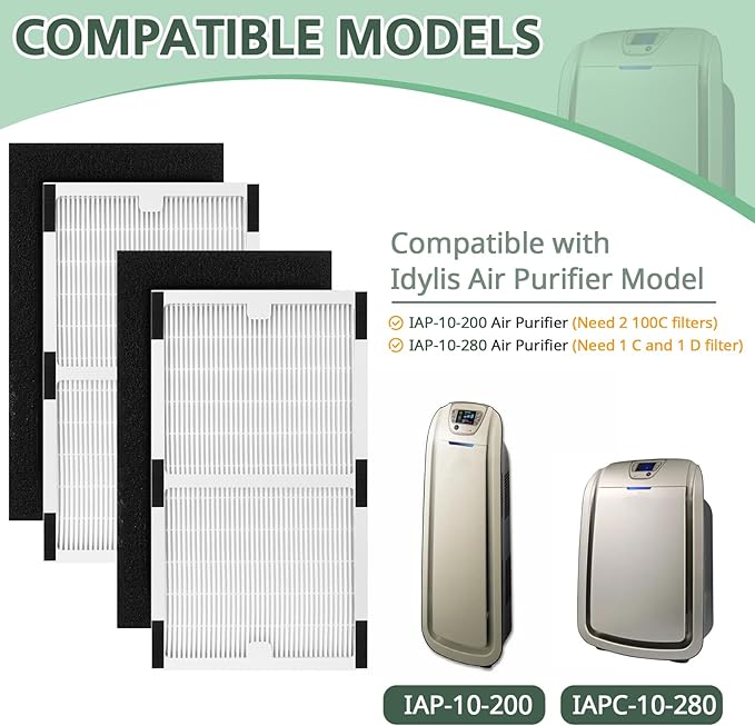 - 【COMPATIBLE】The replacement filters compatible with idylis air models: idylis IAP-10-200 & IAP-10-280, Model # IAFH100C, IAF-H-100C & 302656 IAF-H-100C-P, IAP10200, IAP10280. IAFH100C is also known as 302654, 302656, 302655, LOWESRAPF-C-4.